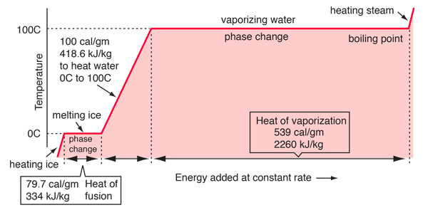 Energy Involved in the Phase Changes of Water![]() The data for the vaporization phase change presumes that the pressure is one standard atmosphere.