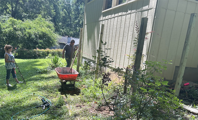 | On June 28 he came out to set the new support 4x4's for the new construction with Rhonda helping with the process. Mark has a lot of experience with design and construction from his movie construction work. |