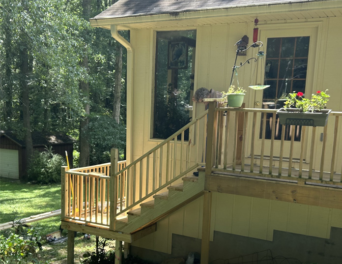 | The view of the new stair and bottom deck from the kitchen side. July 12.