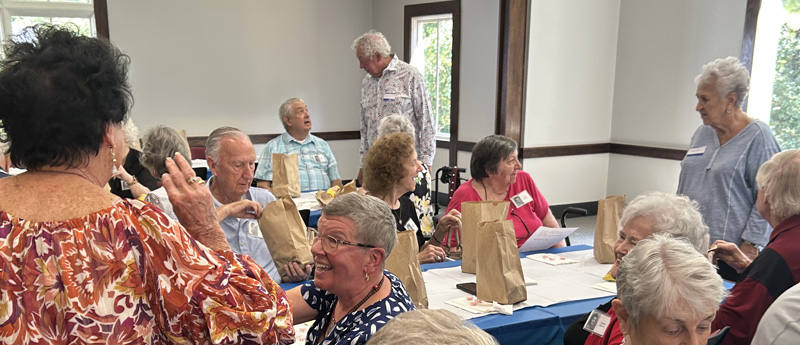 We had a relaxed lunch period around the tables with a game about history in 1959, their year of graduation. |  |