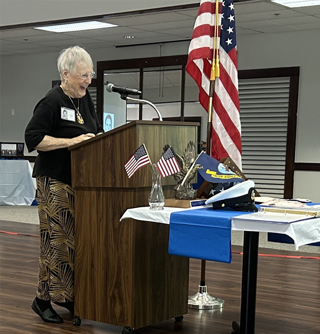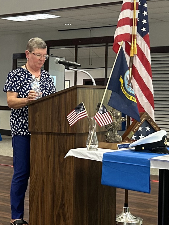 | The speaker for our gathering was Kim Landmon, a Mableton native with 30 years of experience in the Navy. With a Navy rank of Senior Chief Petty Officer, she worked in health care as a Radiologic Technologist. She described for us some of her experience in Afghanistan where she had many challenges with the imaging technology available in that country. |