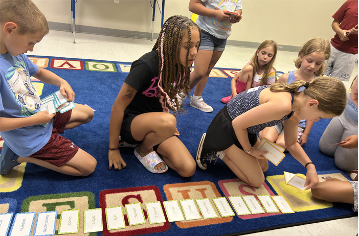 | Each Awana student was given some cards with Bible book names. They began to lay out these cards from the Old Testament in order, starting with Genesis. |
