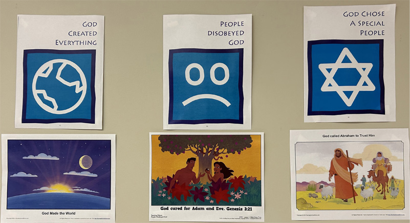 The Sparks Awanas move to large group time with Becky next where she uses the posters to teach about God's plans to deal with sin and develop a special people. |  |