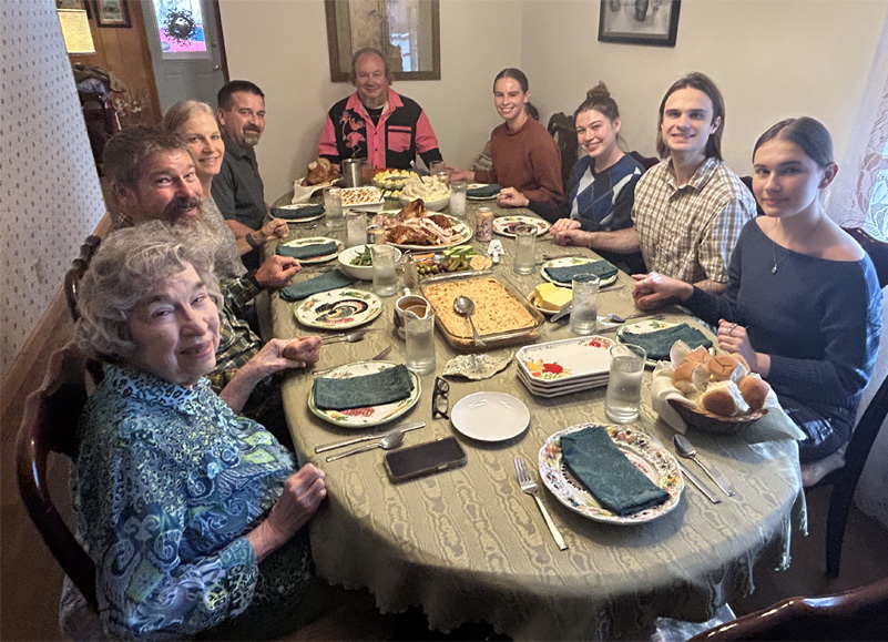 At about 20 after 12 noon, we gathered the family at the table with thankful and prayerful hearts for all the great blessings the Lord has provided. Rod gave a brief reflection on our blessings and then a prayer of thanksgiving for our family and for the food and fellowship we were privileged to enjoy.