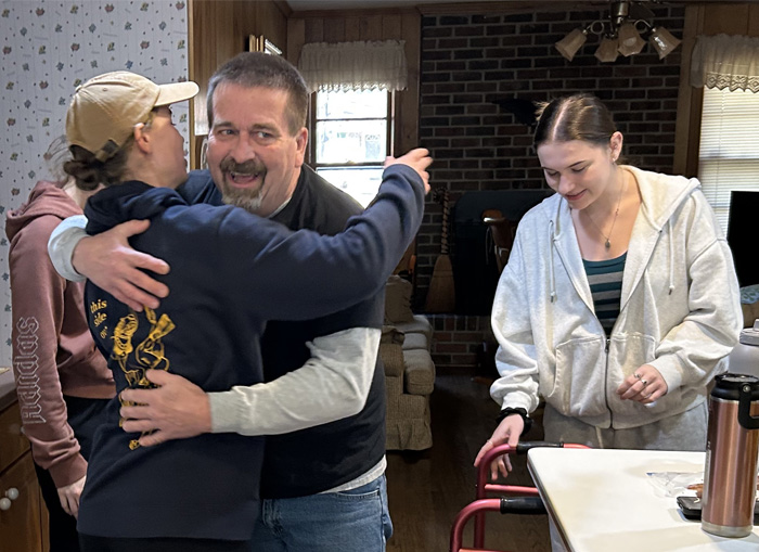 | Uncle Mark made it out about 9:30 and was joyfully greeted by Jordan, Ashleigh, and Elyse |