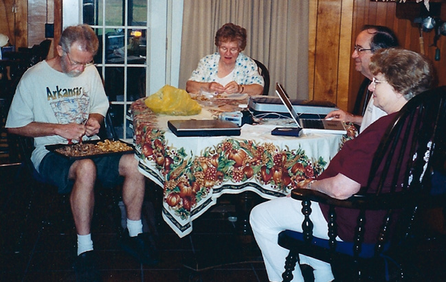 ![]() We just relaxed and sat around and talked. Philippe and Dorothy are shelling pecans, Rod is scanning photographs from one of the family albums. We just had a great time of fellowship.