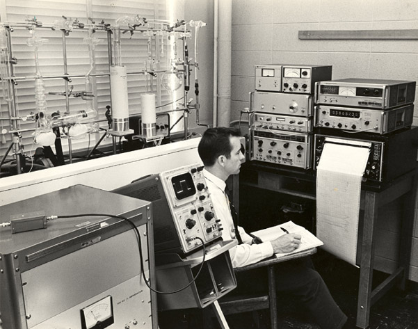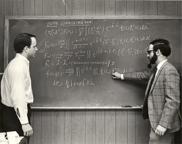 Physics and Astronomy DepartmentGeorgia State University, 1978![]() Buck Clonts with the Electron Spin Resonance apparatus, 5th floor Kell Hall. ![]() Dick Miller with telescope. ![]() Rod Nave with microwave spectrometer. ![]() Martin Meder with nuclear instrumentation. ![]() Martin Meder explaining Feynman diagrams. ![]() Steve Manson presenting the Born Approximation ![]() Connie Gill with Electron Spin Resonance apparatus ![]() Graduate student with nuclear instrumentation.