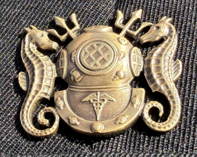 | In the same setting, you can see the emblem for specialty Navy diving on the wall of the building. |  |