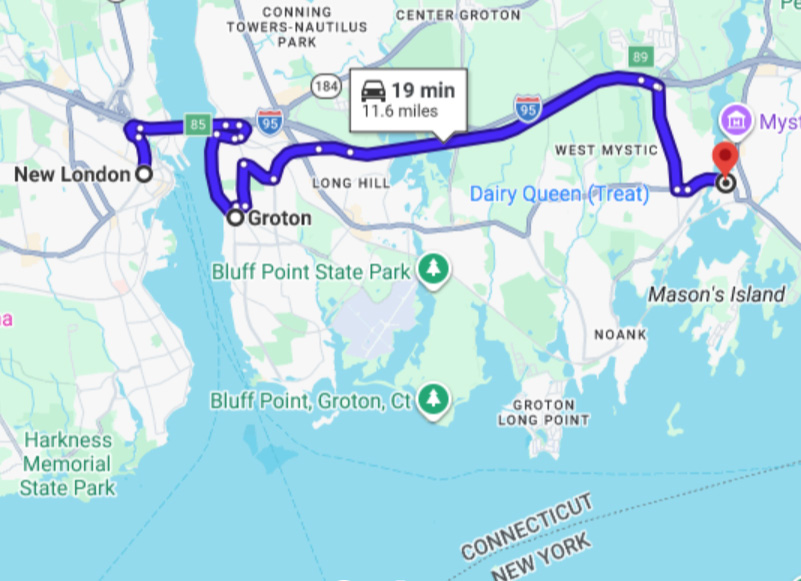 After the western trip that Ashleigh and Elyse took in January, 2026, Ashleigh returned to Connecticut for another five week term and rented a small apartment in Mystic, a small suburb east of the center of Groton. |  |