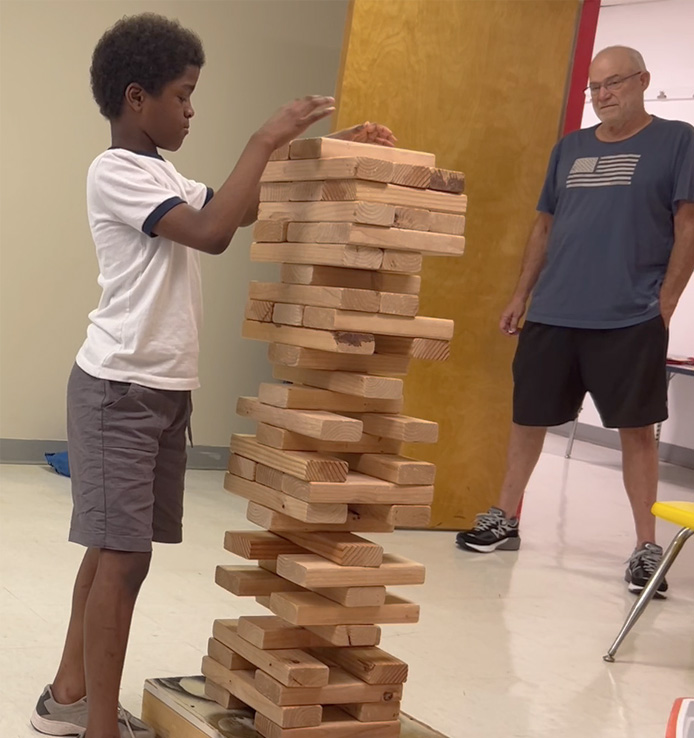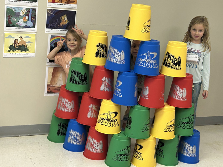The Awana boys and girls are enthusiastic about this time and the cups and Jenga blocks are popular choices. |  |