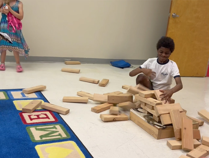 This late May session of Awana was just before our Vacation Bible School for this year, The session began with activities like the large Jenga set of blocks.