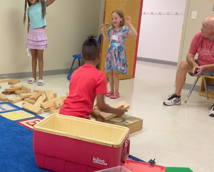 The "stacking cups" game is popular for the introductory recreation time. |  |