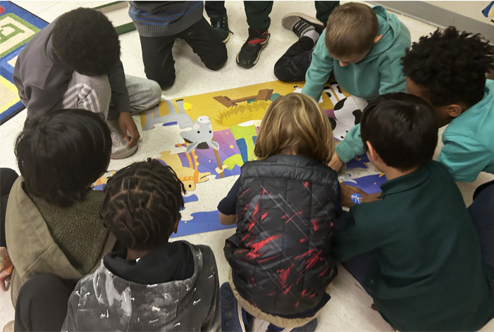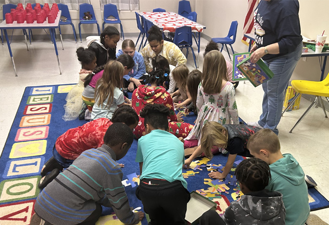 | A closer look at the Awana group working on the Bible Books puzzle. |
