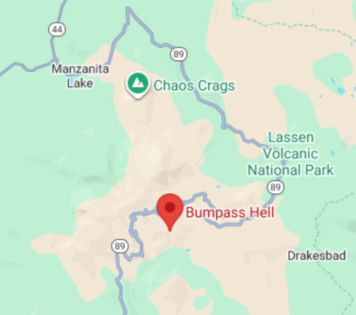 | Bumpass Hell is a location in Lassen Volcanic Park. Getting to it involved a greater adventure than they expected. The normal trail to it was closed because of remaining snow cover, so they had to drive past it to another trail that led over a peak to the Bumpass Hell location and they hiked that trail.