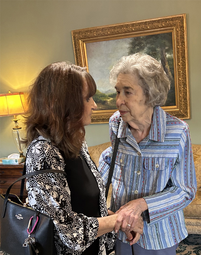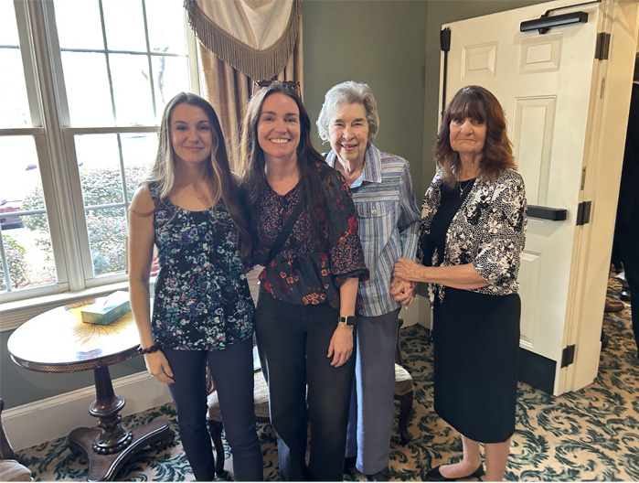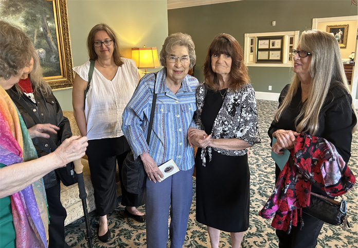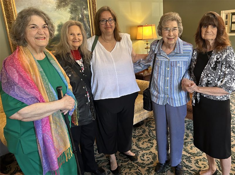Sherry and Marie and Marie's daughter Cheryl, Brenda and Jeanette greet Debbie England, a close friend of Jeanette's who went to school with her. They grew up together in Mableton and have known each other about 58 years. |  |