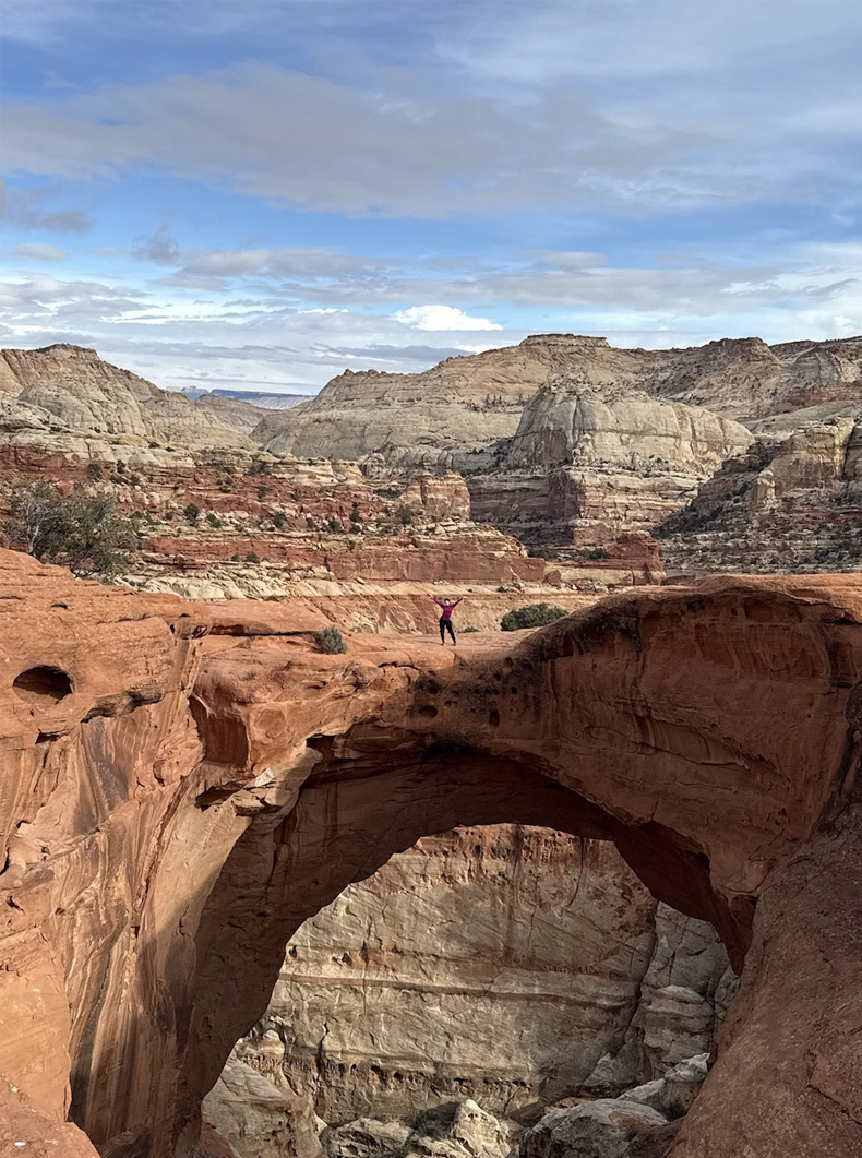 Ashleigh says that this is Elyse on top of the stone arch. Waiting to hear how she got there. I was guessing that this is Hickman Natural Bridge in Utah but Ashleigh says this is Cassidy Arch. The link verifies it as Cassidy Arch. Ashleigh says the Cassidy Arch was amazing and not too scary to climb although the picture makes it seem like it was.