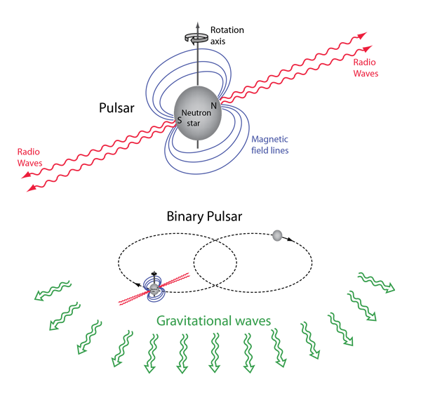 A pulsar is a rotating neutron star that produces periodic signals in Earth detectors as its beam of radiation sweeps over Earth once per rotation. A binary pulsar may have the additional feature of a measurable decrease in the orbital period as the two pulsars spiral inward toward each other. This change in the orbital period can be attributed to energy loss due to the emission of gravity waves, and the rate of energy loss can be calculated from Einstein's general relativity. Therefore the measurement of the rate of change of the orbital period provides a test of general relativity.