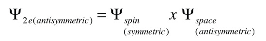 Spin-Spin InteractionThe effect of the spin-spin interaction is noted in Hund's rule #1. If you have two electrons, then the state in which their spins are parallel (S=1, triplet state) will be lower in energy than the state in which their spins are antiparallel (S=0, singlet state). This result is correlated with the fact that the two electrons are identical fermions, and a wavefunction which describes the pair must be antisymmetric with respect to exchange of the electrons ( a requirement of the Pauli exclusion principle). The wavefunction can be considered to be the product of the space and spin wavefunctions: ![]() The fact that the spins are parallel makes the spin part of the wavefunction symmetric, and forces the space part to be antisymmetric. An anti-symmetric space wavefunction for the two electrons implies a larger average distance between them than a symmetric function of the same type. The probability is the square of the wavefunction, and from a simple functional point of view, the square of an antisymmetric function must go to zero at the origin. So in general, the probability for small separations of the two electrons is smaller than for a symmetric space wavefunction. If the electrons are on the average further apart, then there will be less shielding from the nucleus by the other electron, and a given electron will therefore be more exposed to the nucleus. This implies that it will be more tightly bound and of lower energy.