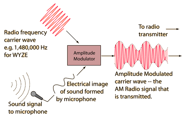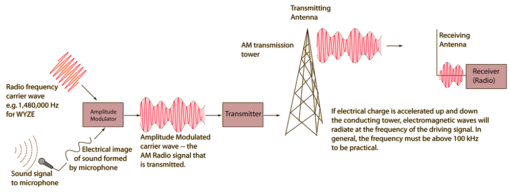 AM TransmissionThis is a sketch of some of the components involved in AM radio transmission. You may click on the illustration for more detail. ![]() |