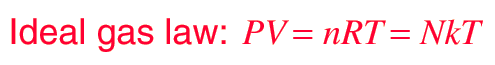 Ideal Gas LawAn ideal gas is defined as one in which all collisions between atoms or molecules are perfectly eleastic and in which there are no intermolecular attractive forces. One can visualize it as a collection of perfectly hard spheres which collide but which otherwise do not interact with each other. In such a gas, all the internal energy is in the form of kinetic energy and any change in internal energy is accompanied by a change in temperature. An ideal gas can be characterized by three state variables: absolute pressure (P), volume (V), and absolute temperature (T). The relationship between them may be deduced from kinetic theory and is called the ![]()