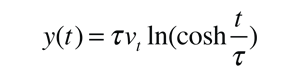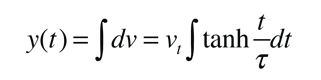 The distance of freefall y as a function of time may be obtained by integrating the velocity expression above.