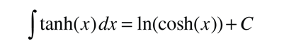 The constant of integration C=0 because cosh(0)=1 and ln(1)=0, so the result of the integration is