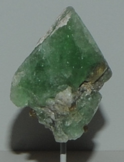 At left is an extraordinary trio of gems displayed at the Smithsonian Museum of Natural History. The center gem is hydroxyl-herderite , 161.08 carats, from Brazil, perhaps the finest gem of its kind with its size and deep green color. The 40.1 carat elbaite gem shown at the left of the trio is from Mozambique as a part of a recent gem discovery with an unusual color for elbaite. On the right of the gem trio is a 15.93 carat grossular gem of variety tsavorite from Kenya.