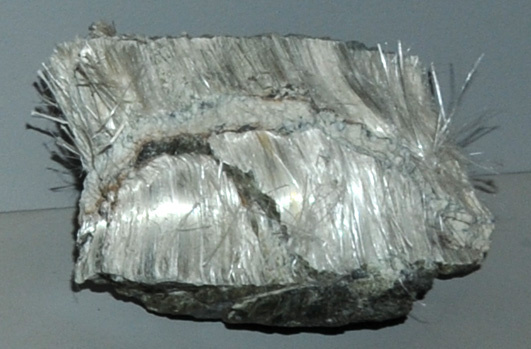 This sample of szaibelyite is displayed in the Smithsonian Museum of Natural History. Szaibelyite is a fibrous mineral which contains magnesium and boron with the composition MgBO2(OH). This sample is about 13x5 cm and originated in Ait Ahmane, Morocco.