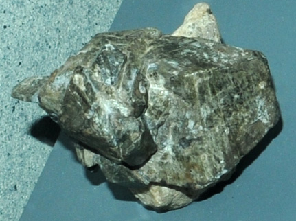 This sample of tremolite is displayed in the Smithsonian Museum of Natural History. Tremolite is a fibrous mineral, one of those which were given the commercial name asbestos. These materials are silicates which contain magnesium and iron. Tremolite has the composition Ca2(Mg,Fe)5Si8O22(OH)2. This sample is about 15x3 cm and is from Corse, France.