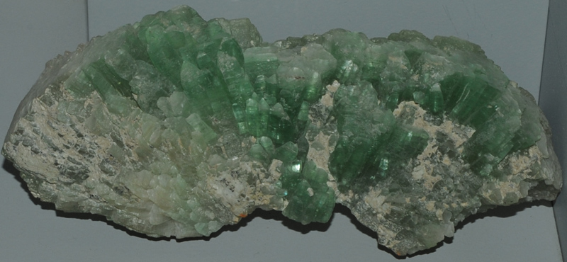 Brucite is a hydroxide of magnesium with the composition Mg(OH)2 . This sample is about 14x7 cm and is from the Ethel Mine, Mtoroshanga, Zimbabwe. These samples of Brucite are displayed in the Smithsonian Museum of Natural History.