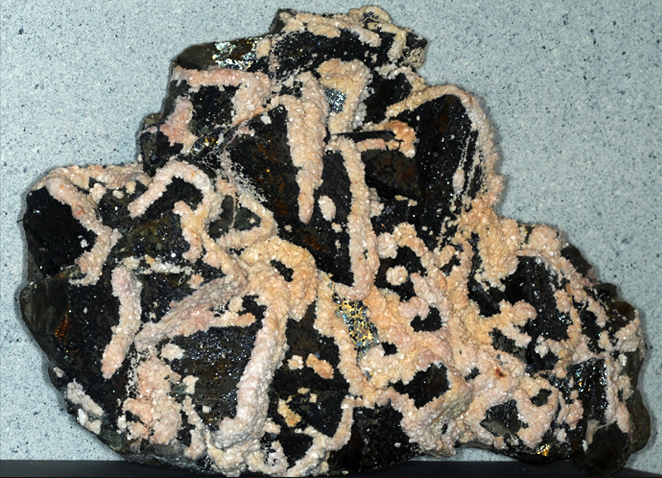 This is chalcopyrite with dolomite from Joplin, Missouri. It is about 25 cm across.