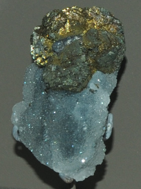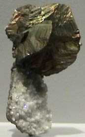 This sample of chalcopyrite is about 4x10 cm and is from Burgers quarry, Paterson, New Jersey. It also is formed with quartz.