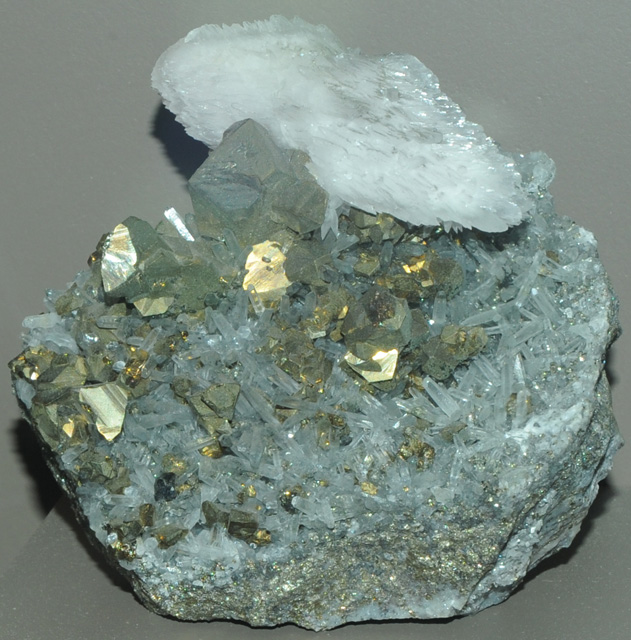 This sample of chalcopyrite with calcite is from Santa Rita, New Mexico. It is about 14 cm across.