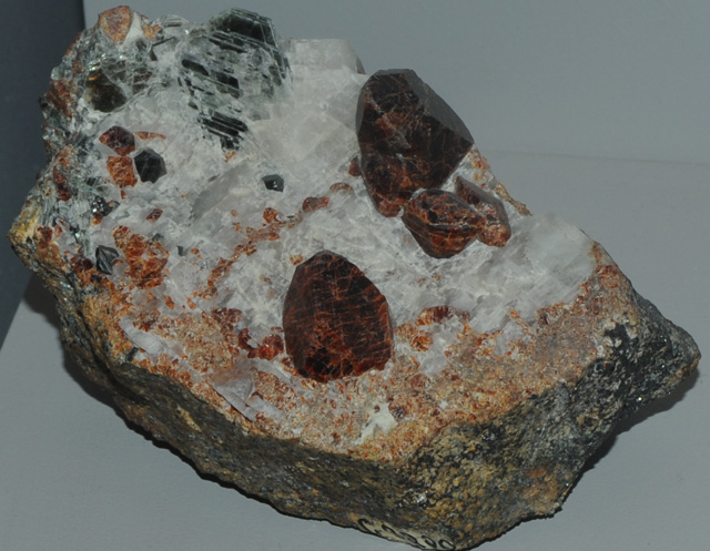 |   | This sample of chlorite is displayed in the Smithsonian Museum of Natural History. Chlorite is more a group name than a specific mineral. It refers to layered mica-like minerals. See the Mindat reference for more details.  This sample is about 20x12 cm and is and is characterized as  chondrodite with chlorite. It is from the Tilly Foster mine, Brewster, New York.   |