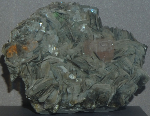 This sample is fluorapatite with elbaite and cookeite. It is about 10 cm across and is from Otjua mine, Karibib, Namibia.