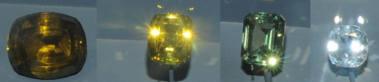 The fluorapatite gem at left is 141 carats and is from Kenya. Next is a 31 carat gem from Magadi, Kenya. The next two are from Burma and are 28.8 and 14.7 carats.