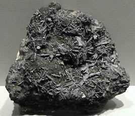 |   | (Tl, Pb)2As5S9This sample of hutchinsonite is displayed in the Smithsonian Museum of Natural History. Hutchinsonite is a sulfide mineral of thallium, lead and arsenic  with the composition (Tl, Pb)2As5S9.  The sample is about 12x12 cm and is from Henderson mine #2, Quiruvilea, La Libertad, Peru.   |