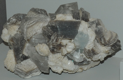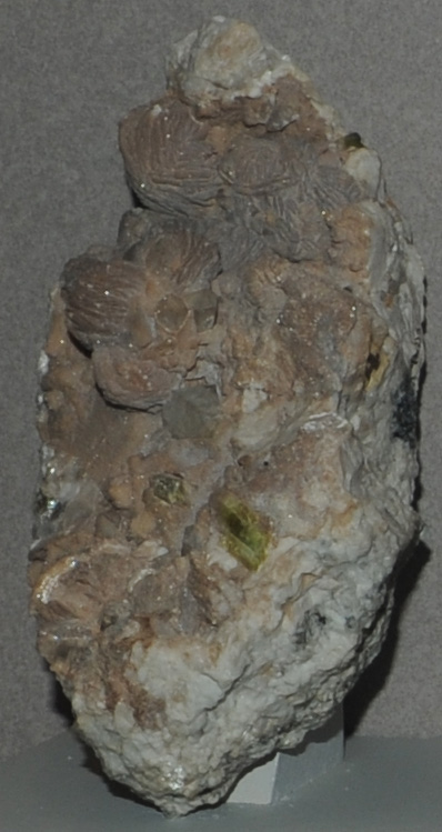 This lepidolite sample is from Minas Gerais, Brazil. It is about 12 cm across.    This is lepidolite with beryl and quartz from Gilgit, Northern Areas, Pakistan. It is about 25 cm across.