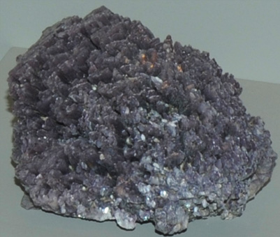 This is lepidolite with albite from Afghanistan. It is about 20 cm across. |