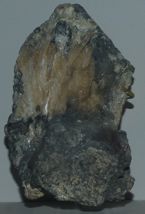 |   | Pb3O2Cl2This sample of mendipite is displayed in the Smithsonian Museum of Natural History. Mendipite is a chloride of lead  with the composition Pb3O2Cl2.  The sample at left is about 7 cm across and is from Mendip Hills, Somerset, England.  It is described as mendipite with cerussite and galena. The mendipite is typically colorless to white or gray.  |