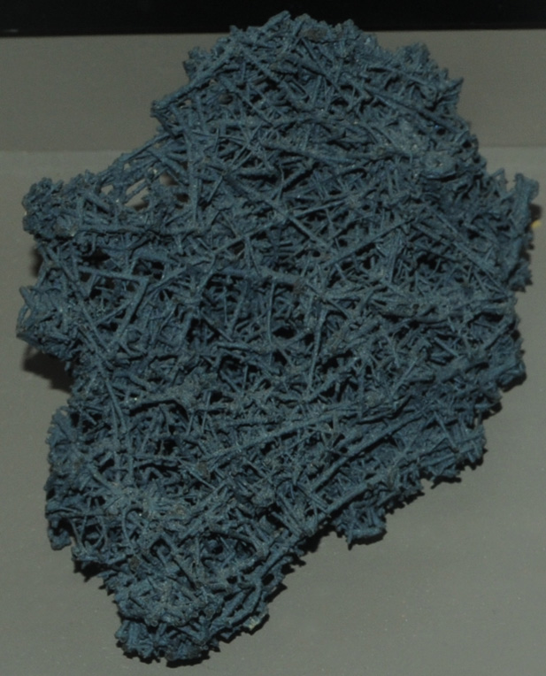 These samples of pyrolusite are displayed in the Smithsonian Museum of Natural History. Pyrolusite is an oxide mineral of manganese with the composition MnO2 . This sample of pyrolusite is about 14 cm across and is from Amapa Territory, Serra do Navio, Brazil.