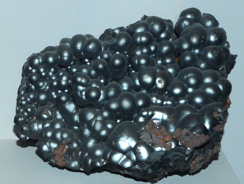 Romanechite![]() This sample of romanechite is displayed in the Smithsonian Museum of Natural History. Romanechite is an oxide of barium and manganese with the composition (Ba, H2O)2Mn5O10 . This sample is about 9x7 cm and is from Marquette County, Michigan. Mindat: Romanechite