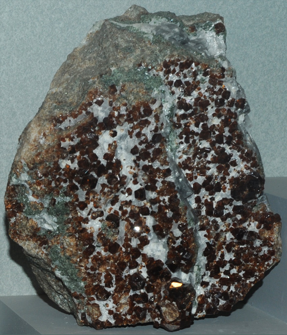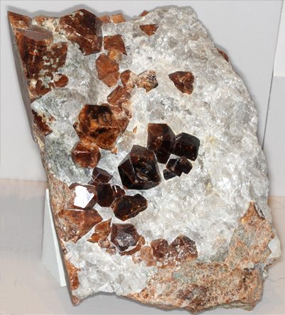 | The sample of grossular at left is about 9x13 cm and is from Minot, Maine.