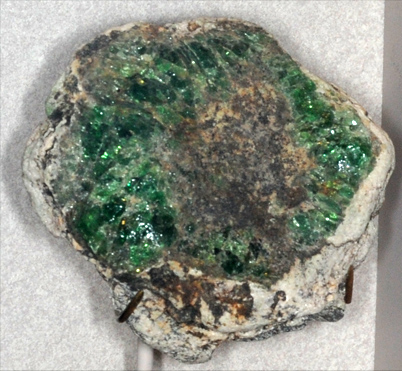 This grossular sample is part of the mineral collection from the cretaceous period around Crestmore, California. It is about 8 cm across.