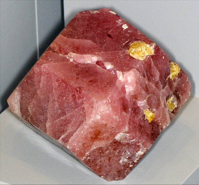 This sample is described as spessartine with helvite, quartz, and microcline. It is about 20 cm long and is from Tongbei, Fujian Province, China. |