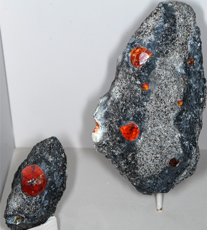 These spessartine gems are 40.1 and 26 carats and are from Amelia, Virginia.