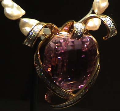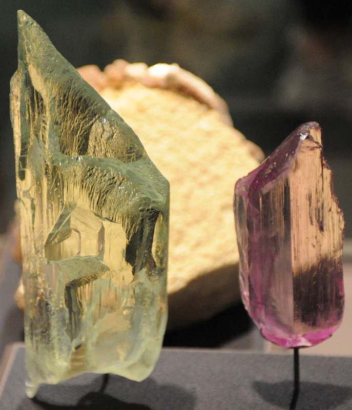 |   | The sample of spodumene at left is about 12x25 cm and is from Brazil.   This spodumene gem is 880 carats and is from Brazil. |