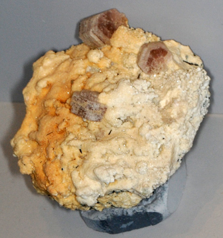 |   | LiNa(Zr,Ti,Hf)Si6O15This sample of zektzerite is displayed in the Smithsonian Museum of Natural History. Zektzerite is a silicate mineral of lithium with hafnium, zirconium, titanium and sodium. It has the composition LiNa(Zr,Ti,Hf)Si6O15.  This sample is described as zektzerite with albite and is from Washington Pass, Washington. This sample is about 7x7 cm and it is labeled as the zirconium variety, LiNaZrSi6O15  |