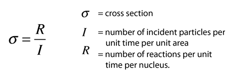 Nuclear Cross SectionTo characterize the probability that a certain nuclear reaction will take place, it is customary to define an effective size of the nucleus for that reaction, called a cross section. The cross section is defined by ![]() The cross section has the units of area and is on the order of the square of the nuclear radius. A commonly used unit is the barn: A standard old story was that in the early days of the field, a particular cross section turned out to be much bigger than expected. An experimenter exclaimed "Why, that's as big as a barn!" and a unit name was born.
