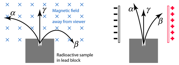 Alpha, Beta, and GammaHistorically, the products of radioactivity were called alpha, beta, and gamma when it was found that they could be analyzed into three distinct species by either a magnetic field or an electric field. ![]() |